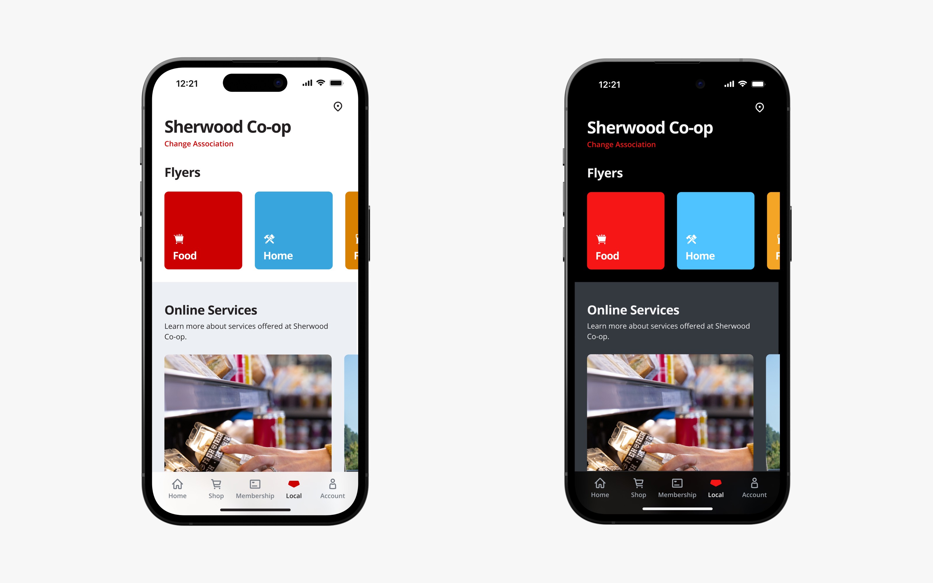 Check out our implementation of Dark Mode in the recently launched Co-op Mobile App available on the Apple App Store and the Google Play Store.